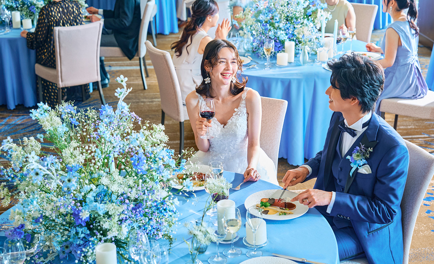 いつまでも心に残る一瞬のために。おふたりの色に彩られた、最高の一日を、ここ“みなとみらい”で演出いたします。最上のおもてなしとともに、ホテルが誇るシェフたちが、おふたりの真心やこだわりを一皿一皿に込めて