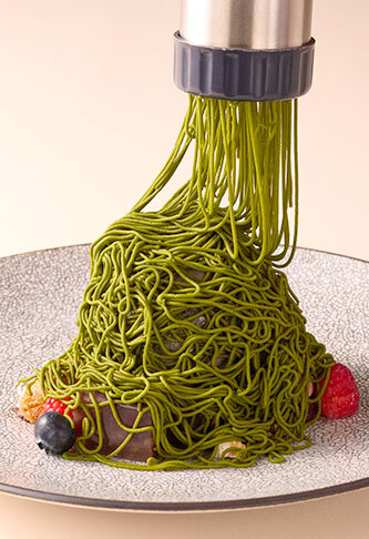 お客様の目の前でクリームをしぼって仕上げる人気の「しぼりたてモンブラン」が、期間限定で上品な香りの抹茶クリームを用いた"和"のテイストで登場!