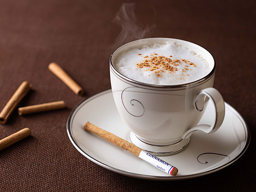 温かいカフェラテに、キャラメルの甘さとシナモンのスパイシーな風味が加わった、香り豊かな一杯。お好みに合わせてシナモンスティックでより深い風味を加えても。