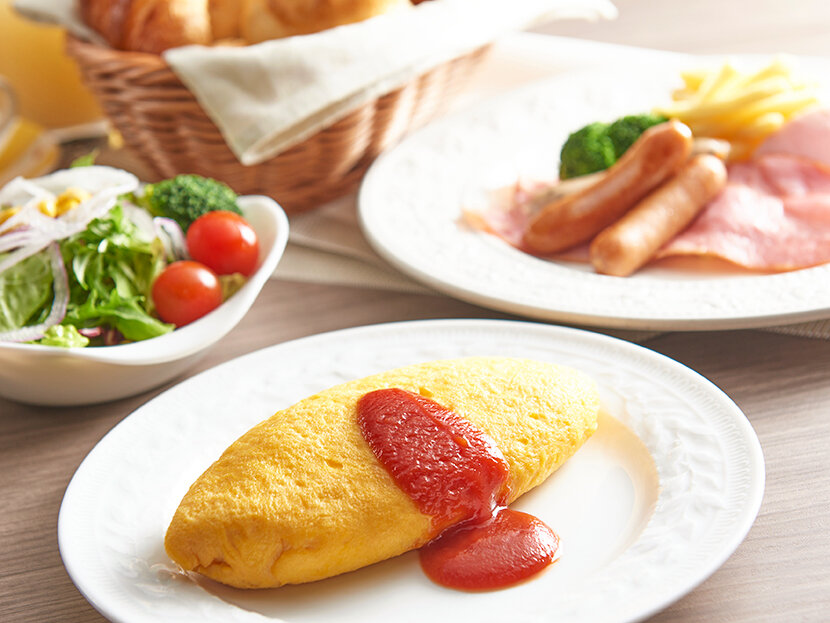 フレッシュジュースで体を目覚めさせたら、シェフが作るとっておきのオムレツを。ふわっふわトロトロのオムレツを、ひとつひとつ心を込めて焼き上げます。香り高く味わい深いメゾンカイザーのパンは天然酵母を使用し、ホテル内の工房で焼き上げられます。