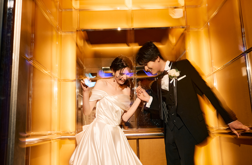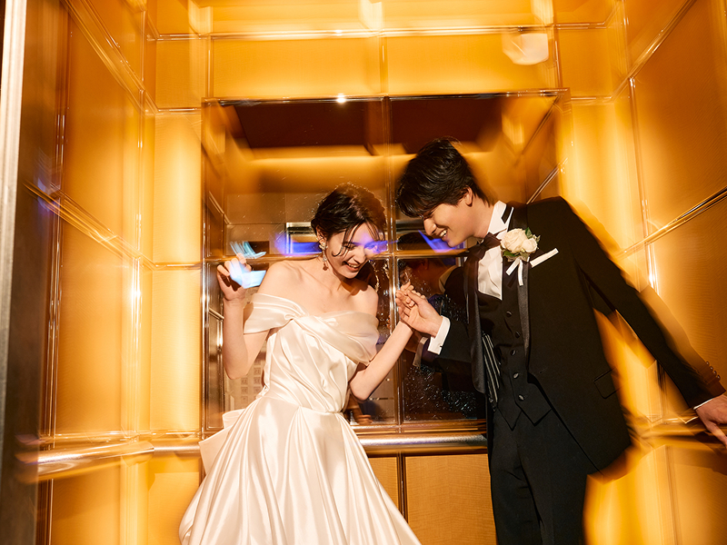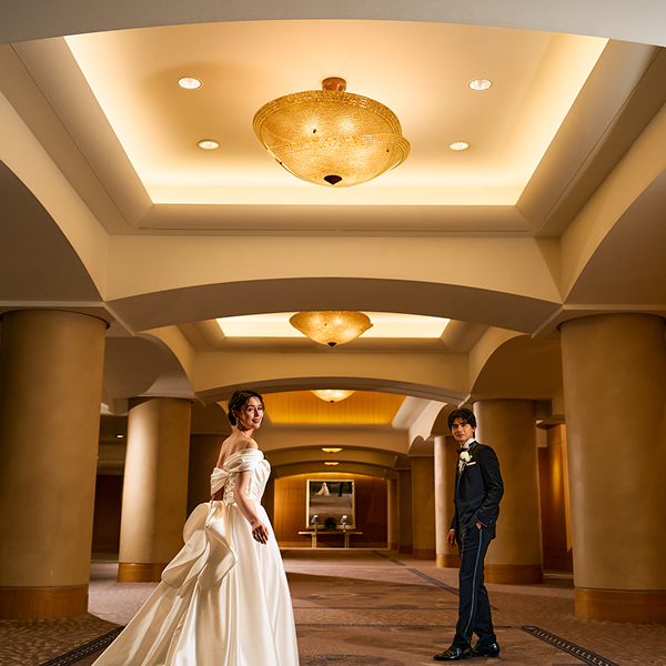 支度を終えたおふたりが向かうのは、ホテル館内や