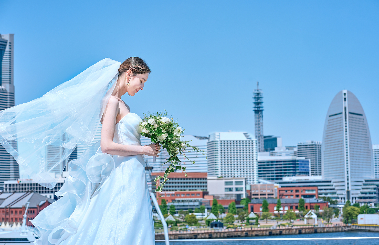 みなとみらいの街並みなど、思い思いのシーンで楽しむ撮影の時間。